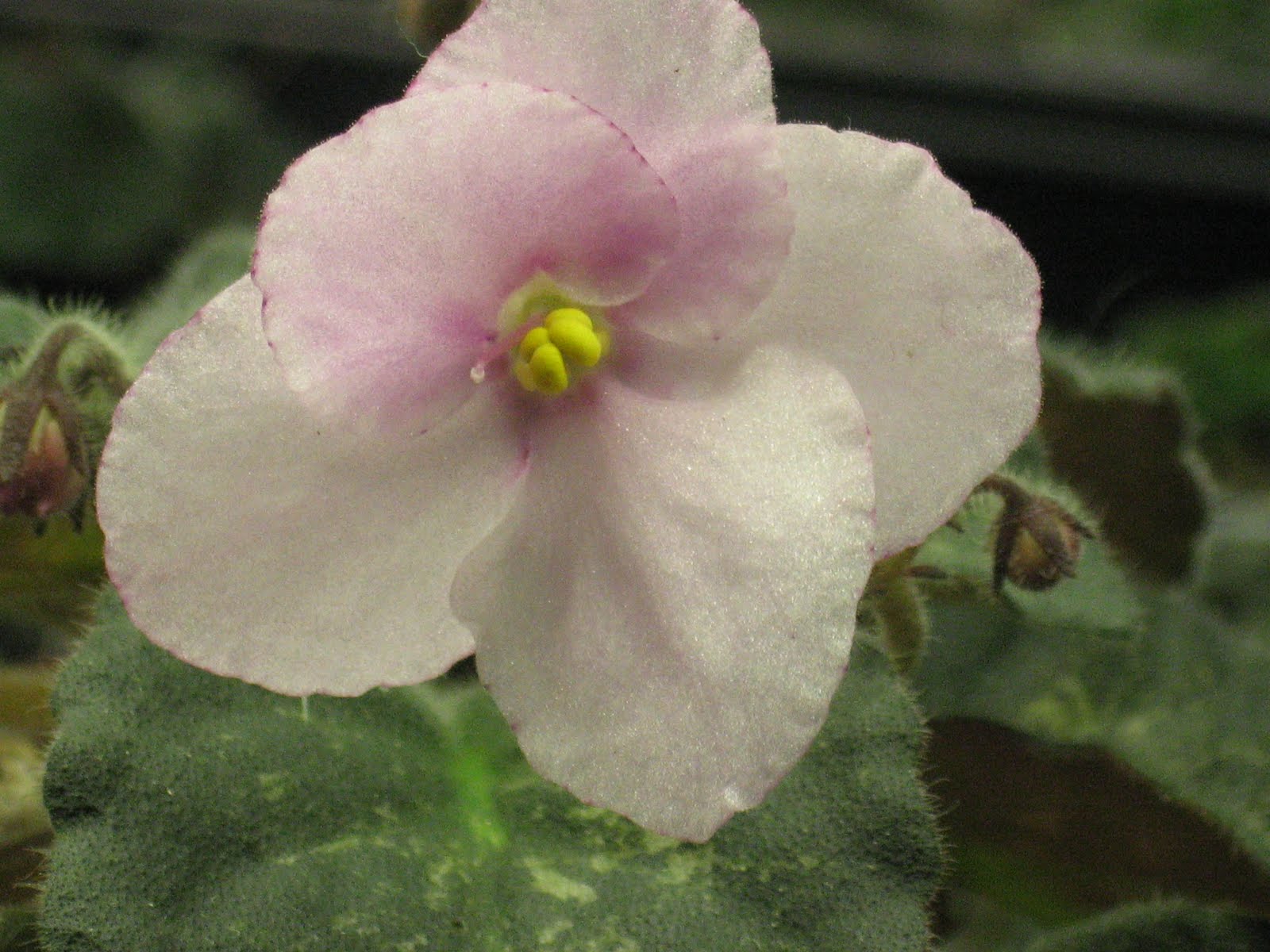 This beauty sports mosaic foliage. Very open growing. Blooms almost continuously.